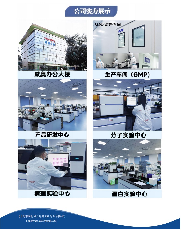 組織芯片、ELISA KIT、鏈霉親和素磁珠、蛋白純化試劑盒(磁珠法)、western整套產(chǎn)品(5種顏色的SDS-PAGE凝膠試劑盒、上層膠染料(遷移/不遷移)、快速轉(zhuǎn)膜液、快速封閉液、通用抗體稀釋液、免脫色考馬斯亮藍(lán)染色液等)、免疫組化整套試劑(TSA試劑盒、IHC試劑盒、SABC試劑盒、HRP多聚體二抗等)以及常用緩沖液。